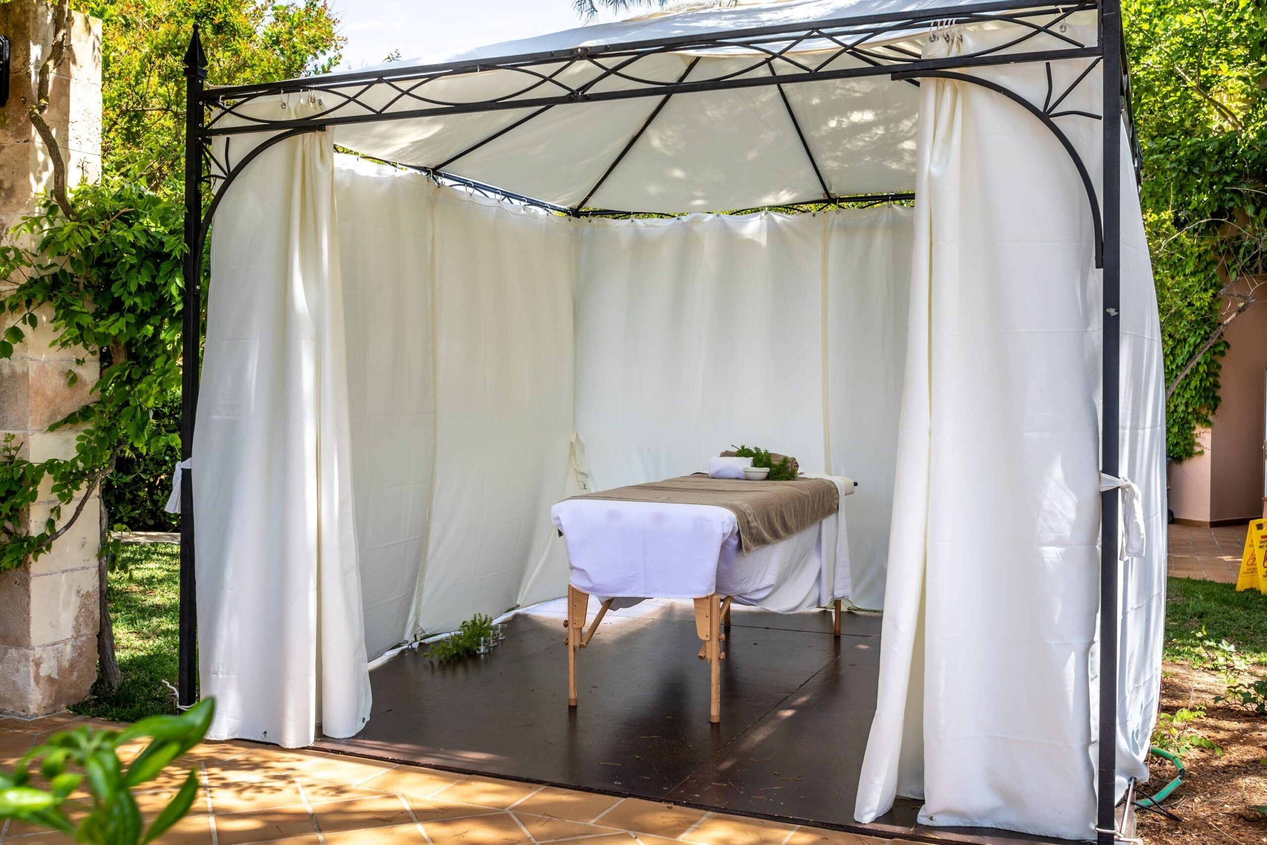 屋外・お庭には、パティオガゼボ・タープテントなどを使用し、ラグジュアリースパを演出致します。